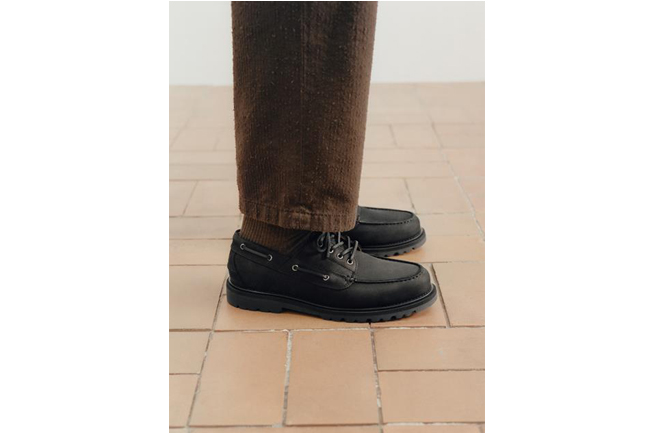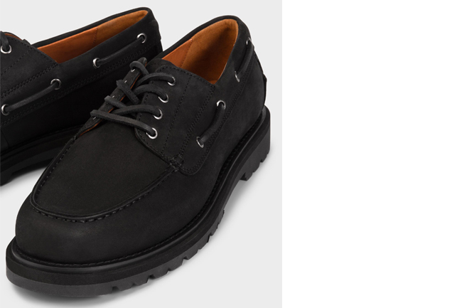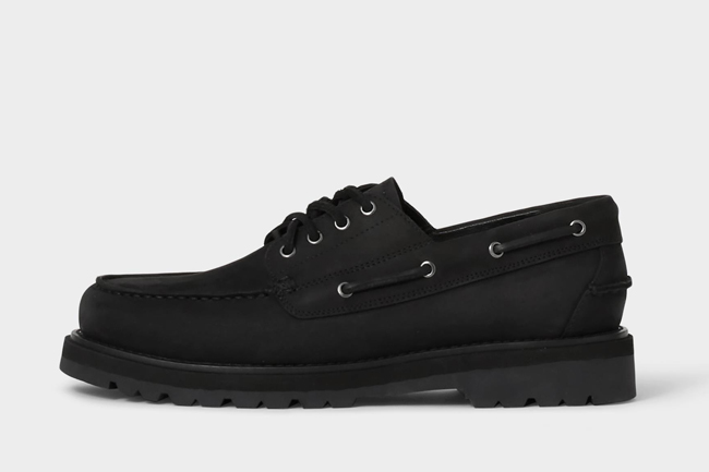 Τα boat shoes Jay της Vagabond διαθέτουν αισθητική εμπνευσμένη από την εργασία, κατασκευασμένα από μαύρο nubuck. Το σχέδιο παρουσιάζει στρογγυλές μύτες και χαρακτηριστικά δερμάτινα κορδόνια. Οι τακούνια 15 χιλιοστών ολοκληρώνουν το look με έναν ανθεκτικό χαρακτήρα.