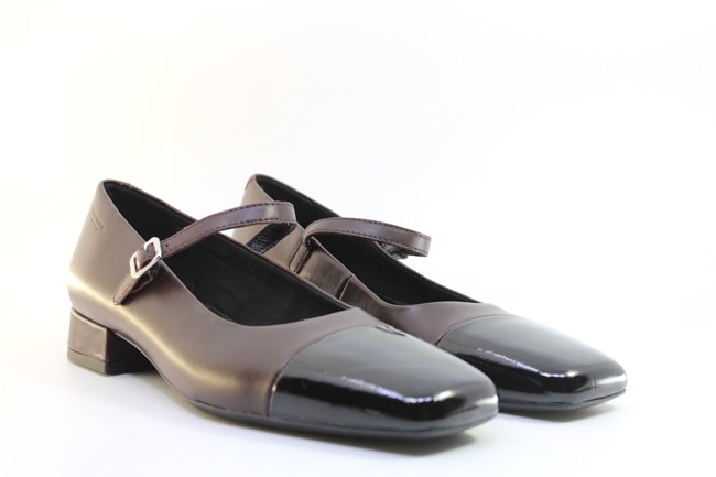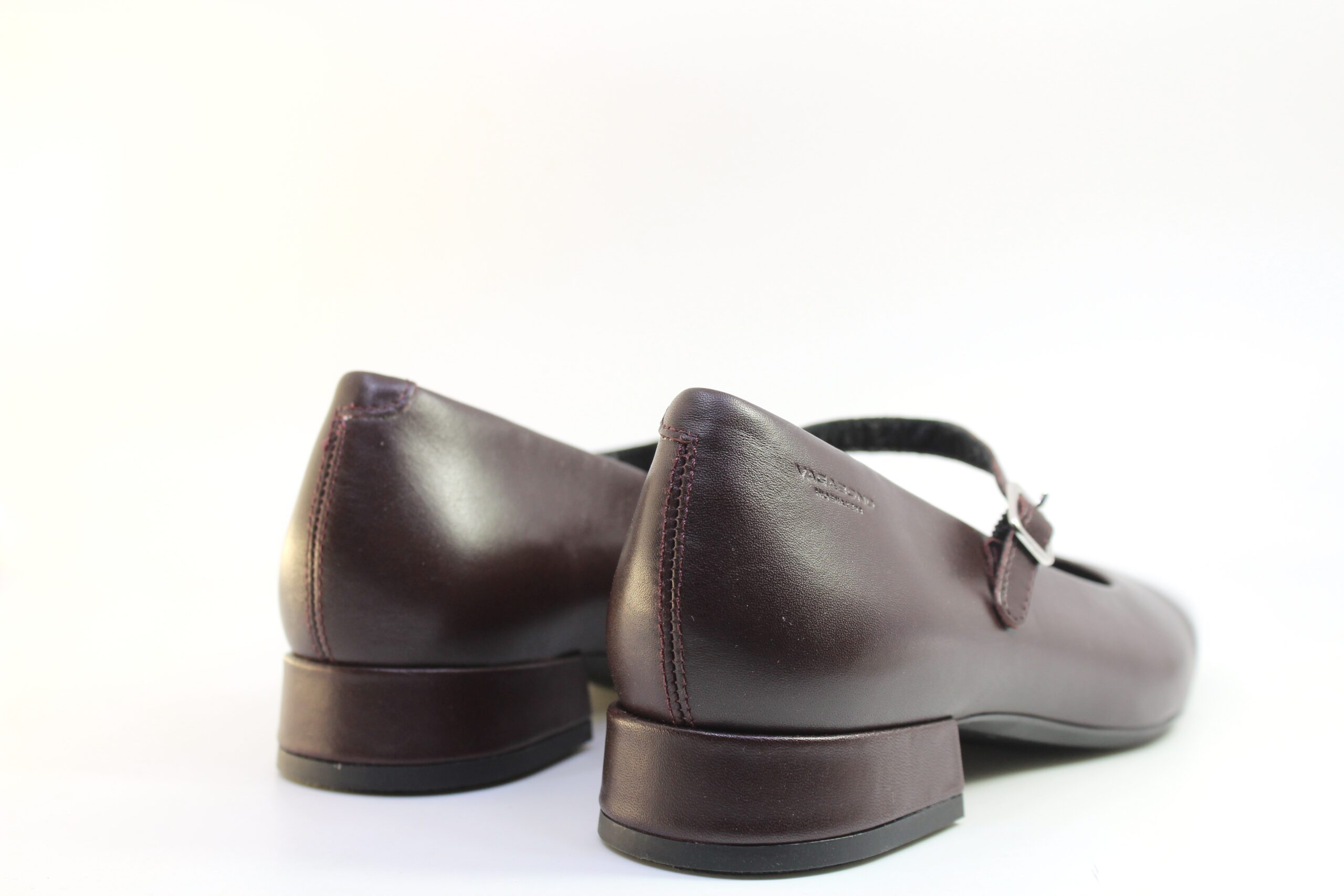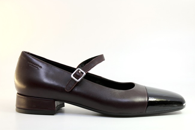 Η Debbi επαναπροσδιορίζει τη σύγχρονη κομψότητα. Η γόβα Mary Jane είναι φτιαγμένη από δέρμα σε κερασί απόχρωση και διαθέτει τετράγωνη μύτη και ρυθμιζόμενο λουράκι στον αστράγαλο. Ο σχεδιασμός ξεχωρίζει χάρη στο μαύρο λουστρίνι στο μπροστινό μέρος, που προσθέτει μια εντυπωσιακή αντίθεση. Το τακούνι έχει ύψος 25 mm. Οι λεπτομέρειες περιλαμβάνουν δερμάτινους πάτους.