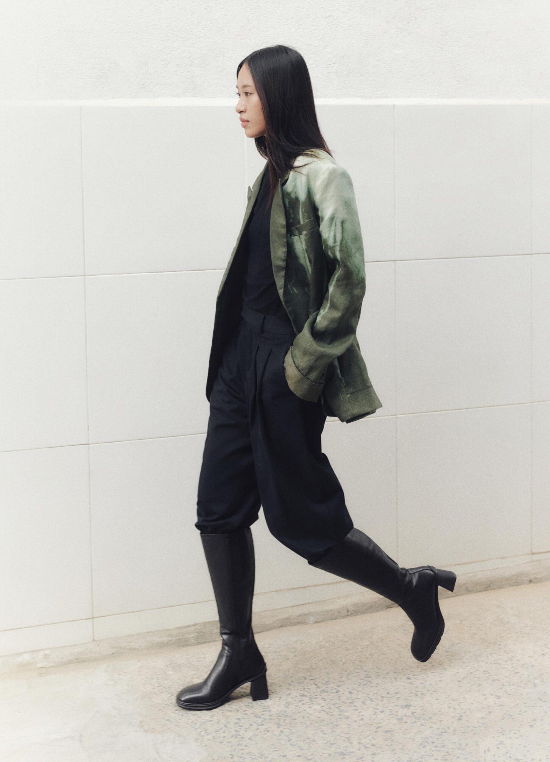 - Δερμάτινες μπότες με τακούνι μαύρες