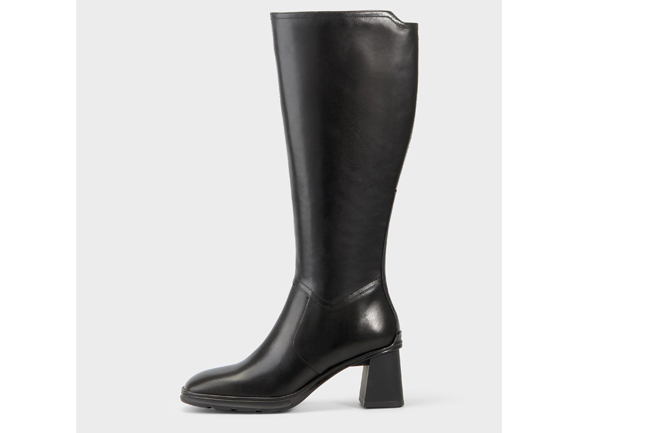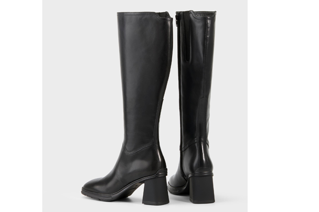 Μια ανανεωμένη εκδοχή της κλασικής ψηλής μπότας. Η Janine της Vagabond είναι κατασκευασμένη από μαύρο δέρμα και διαθέτει διακοσμητικό λουράκι στο πίσω μέρος, διακριτικά τετράγωνη μύτη και τακούνι τύπου flared ύψους 60 mm.Ιδανική επιλογή για καθημερινή χρήση αλλά και ποιό casual chic εμφανίσεις.