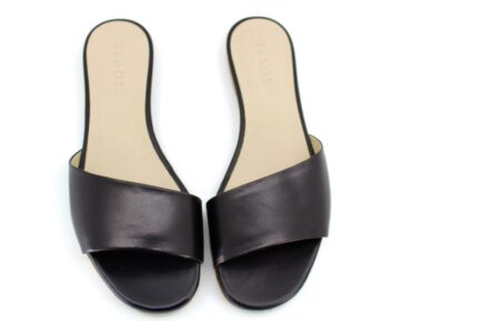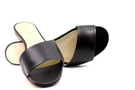 Δερμάτινες flat παντόφλες μαύρες GLADZ.Ασύμμετρο κόψιμο δέρματος .Δερμάτινη επένδυση.Δερμάτινη σόλα.Made in Portugal.100% calf leather .